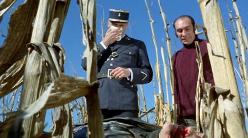 But now we lose a suspect (doh!) as the cop is led to a corn field where the remains of a bled-out Jean is lying. Clearly the fight with Gilles killed him and he has run, collapsed and bled to death.