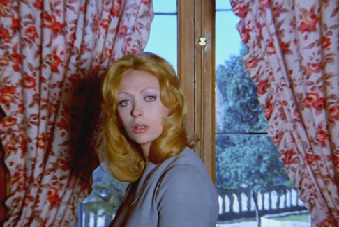 Then a discovery! Horny Nicole, bored out of her mind, is creeping around the house. Or a house. It’s not clear. Behind a heavy wall-hanging, she finds a hidden door. As jazz flutes and bongos create a creepy mood, she wanders through plaster walls, staircases and arches. All painted white. The tell-tale Frère Jacques is back on the soundtrack. She wanders into a room. Painted white, airy and bright. She sees something we don’t see. “I knew it!” she cries! And we watch the killer’s POV as he approaches her.