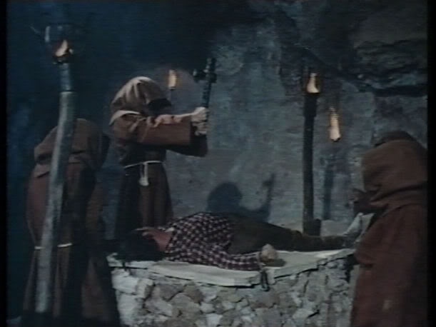 We open with some cheapie credits that puts us firmly in low-budget “made for TV” style territory. Think low-rent Hammer House Of Horror or a Roald Dahl short play. Yellow type, bit gothicky.