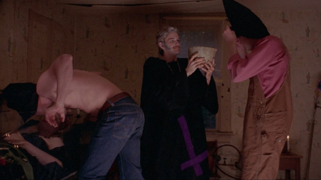 So we could look at “Schoolgirls in Chains” flashback moment – the jarring soft focus bit where we see the momma/son relationship as either “sealing the deal” on the set up or over egging the pudding. But it’s a nice scene and Greta Gaylord has heaps of fun playing the twisted shrieking mother, all breasty massage and lipstick.