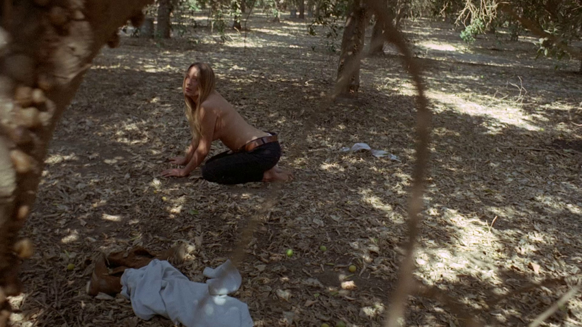 But Jon has more games on his mind. It’s time for round two of “Doctors.” He pulls Bonnie down and pulls out his knife, forcing her to strip topless on the leafy dirt for her “examination.” Which brings us to the best exchange of the picture: